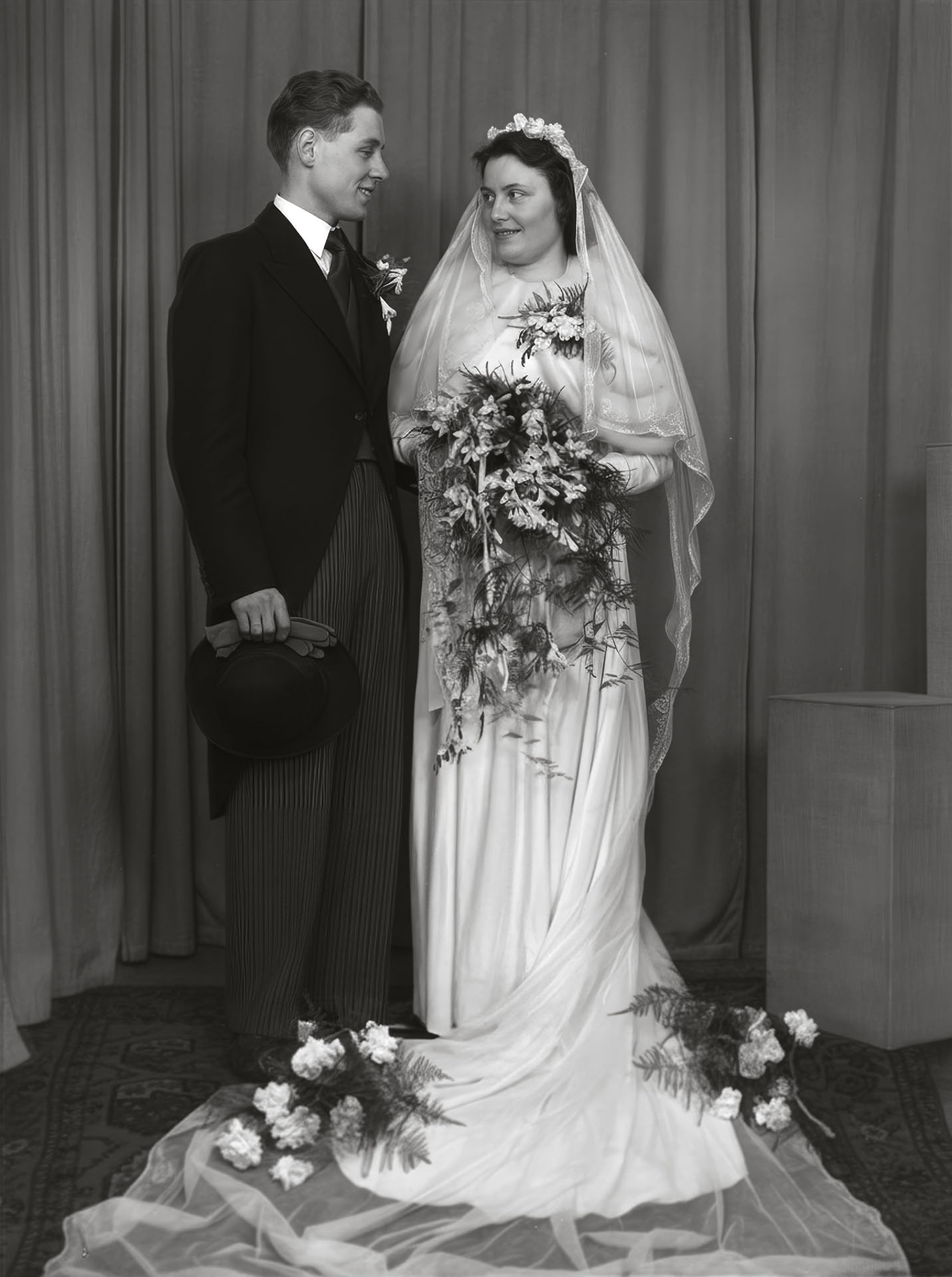 Ik scan de foto’s in en bewaar ook het originele bestand digitaal, inclusief de beschadigingen die erop te zien zijn. Die krijg je van mij ook terug. Tijdens de bewerking verwijder ik de stofjes, zodat de foto al snel frisser oogt. Daarna ga ik aan de slag met de retouche – mijn creatieve magie. Van de eerste foto ontvang je het resultaat, en zodra die is goedgekeurd werk ik verder aan de rest. Afhankelijk van het aantal foto’s dat bewerkt moet worden, spreken we samen af hoe je de digitale bestanden van mij terugkrijgt.